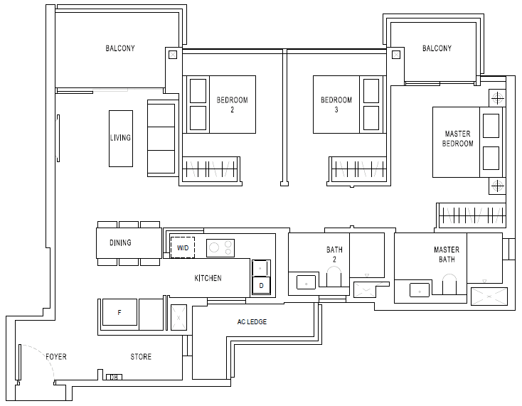Type: C3a (3 Bedroom Premium)   Size: 1152 Sqft / 107 Sqm