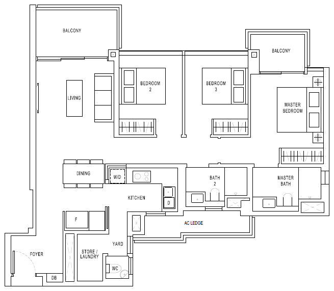 Type: D1 (4 Bedroom)   Size: 1249 Sqft / 117 Sqm