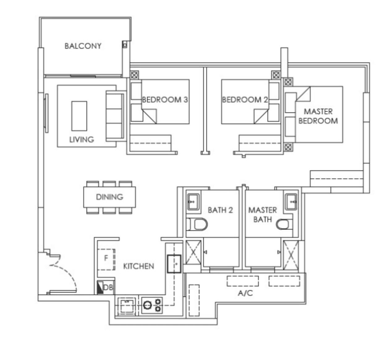 3 Bedroom + Study (Deluxe) 1001 Sqft